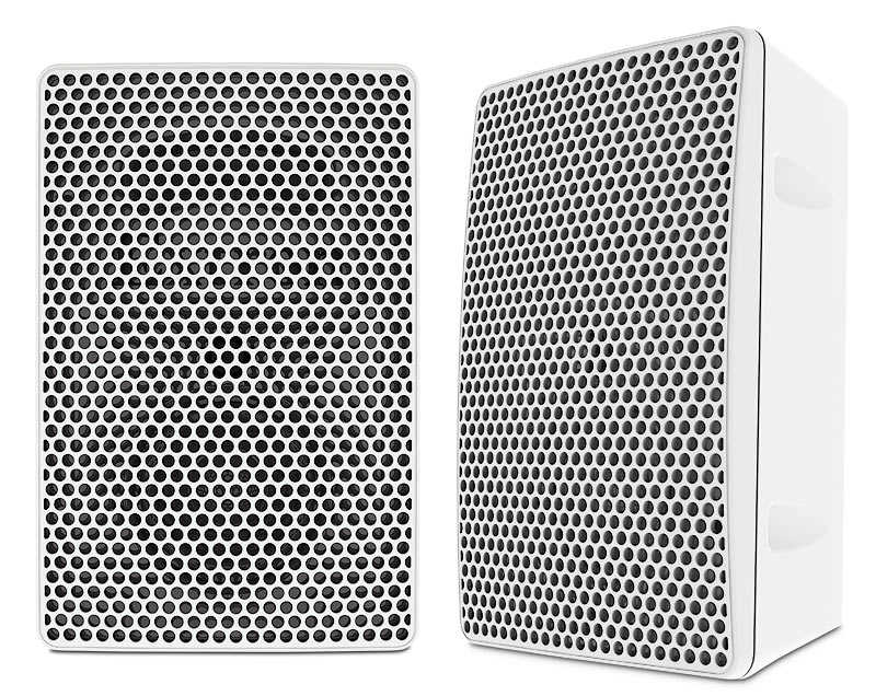 Operating: +32 to +122 °F (0 to +50 °C) / 10% to 90%, noncondensingMounting Wall mountable with included mounting plates (0° and 10°) NOTE Speaker mounting angle is fixed at 0° or 10° from vertical based on the mounting plate used. Enclosure type Plastic, trapezoidal, with molded grille and front bass reflex port Enclosure outer dimensions With 0° mounting plate 8.75" H x 5.75" W x 4.0" D
