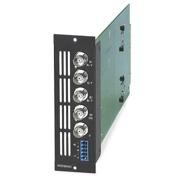 350 MHz (-3 dB) for wideband single/dual boardsVideo input — main unit Number/signal type 8 RGBHV, RGBS, RGsB, RsGsBs, HDTV component video (interlaced or progressive), S-video, composite video Connectors 8 x 5 female BNC Nominal level 1 Vp-p for Y of component video and S-video, and for composite video