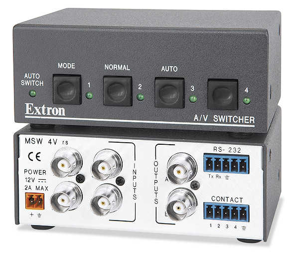 Extron Simple Instruction Set (SIS™)General External power supply 100 VAC to 240 VAC, 50-60 Hz, external, to 12 VDC, regulated Power input requirements MSW 4V rs, MSW 4SV rs 12 VDC, 0.2 A MSW 4V SDI rs 12 VDC, 0.4 A Cooling Convection, no vents Temperature/humidity Storage: -40 to +158 °F (-40 to +70 °C) / 10% to 90%, noncondensing